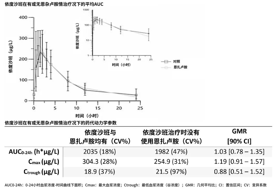 △依度沙班在有或无恩杂卢胺影响下的平均曲线下面积(AUC)及药代动力学参数[9]