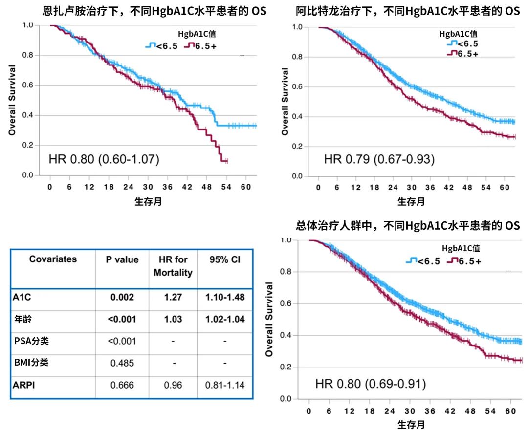 △恩扎卢胺、阿比特龙治疗下不同HgbA1C水平患者的OS[8]