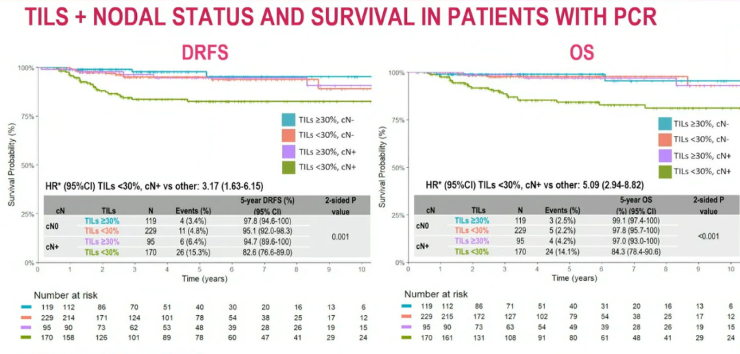达到pCR且基线TILs水平低并伴有淋巴结受累的三阴性乳腺癌患者,其生存率显著低于基线TILs水平高且无淋巴结受累的患者(2025年ESMO乳腺癌年会,摘要2O)