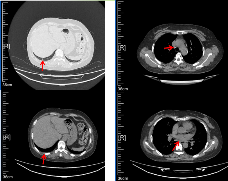 治疗经过:2023年3月27日始行恩沙替尼靶向治疗至今,最佳疗效为PR,末次评效为维持PR。期间出现轻度肝功能异常(DILI 1级),对症处理后好转。截止目前PFS为26个月。
