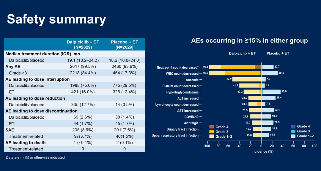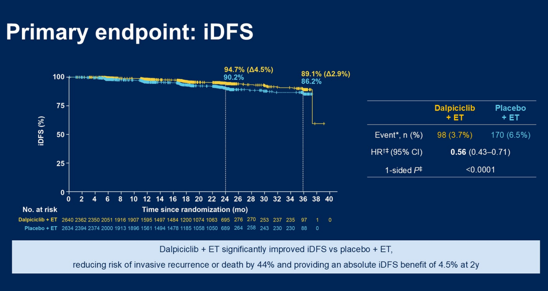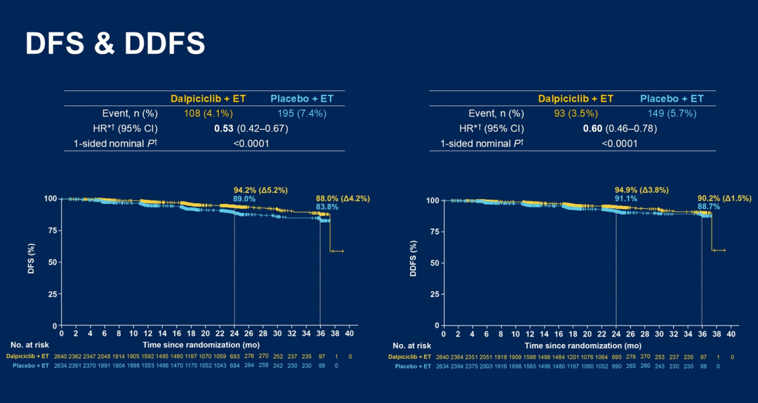[5]Zhimin Shao,et al.Dalpiciclib(Dalp)plus endocrine therapy(ET)as adjuvant treatment for HR+/HER2–early breast cancer(BC):The randomized,phase 3,DAWNA-A trial.ASCO 2025;Abstract#515