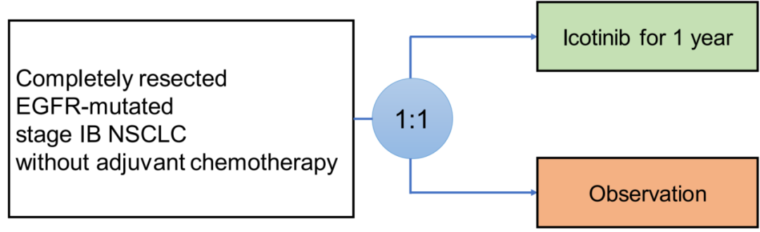 CORIN(GASTO1003)研究是一项针对完全切除的EGFR突变ⅠB期NSCLC患者的前瞻性、开放标签、随机对照Ⅱ期临床试验。该研究纳入了未接受过新辅助化疗、辅助化疗或围手术期放疗的患者,随机分为接受1年埃克替尼辅助治疗(125mg,每日三次)和单纯观察两组。研究的主要终点是DFS,次要终点包括OS和安全性。