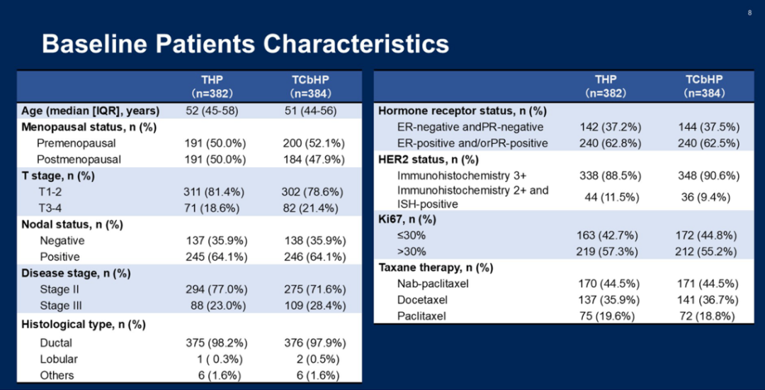 从neoCARHP研究入组人群来看,T1-2期患者占比较高(THP组为81.4%)。因此,根据该研究公布的结果,在临床实践中,我会考虑对分期较早的患者使用THP方案;而对于T3-4期的患者,可能还需要进一步充分评估。此外,我们也会关注老年人以及容易出现骨髓抑制患者的治疗疗效,对于这些患者,我们会更多地选择THP方案,而放弃TCbHP方案。