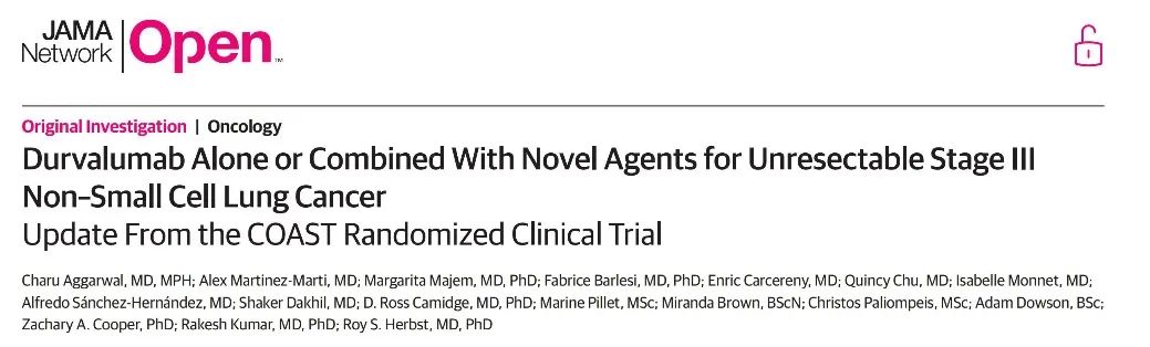 度伐利尤单抗±新药治疗不可切除的III期非小细胞肺癌患者的疗效及安全性:COAST研究的更新随访数据