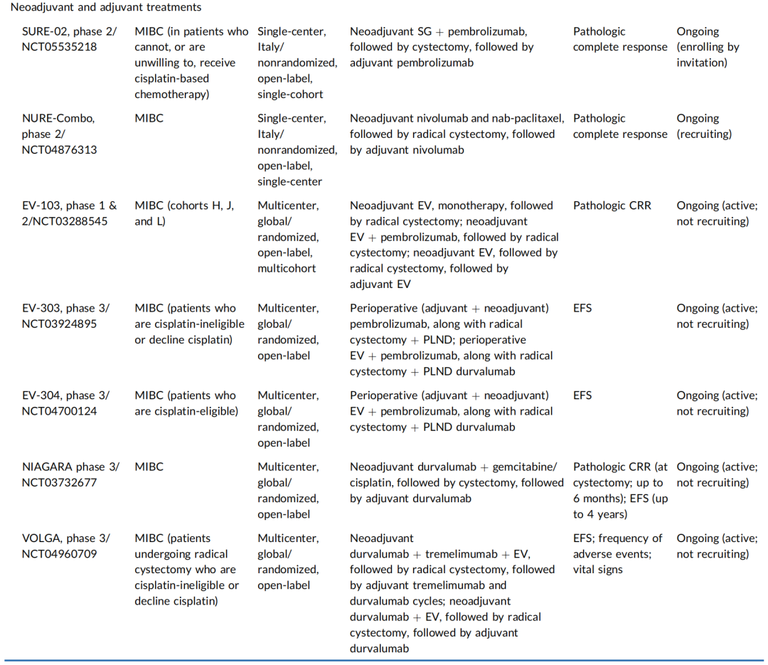 表1.已完成或在研的MIBC围术期治疗研究