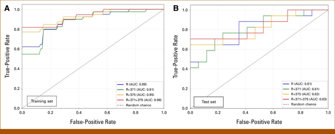 研究人员回顾性分析了111处病变;他们使用其中78处病变训练机器学习模型,33处病变进行分析。他们使用开源三维Slicer软件提取影像组学特征,并通过定量聚合酶链式反应测定术前血浆miRNA-371和miRNA-375水平。四种机器学习模型评估了影像组学单独应用以及与miRNA水平联合应用的预测价值。