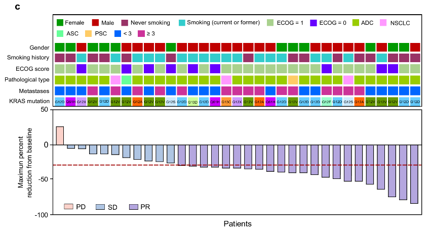 该研究采用了从实验室到临床的转化医学研究模式,共纳入33例携带non-G12C KRAS突变的晚期NSCLC患者。临床研究(NCT04967079)分为Ia期剂量递增和Ib期固定剂量扩展两个阶段,旨在评估联合治疗方案的安全性、耐受性和初步疗效。