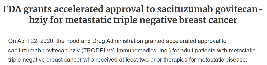 FDA加速批准SG三线及以上治疗TNBC