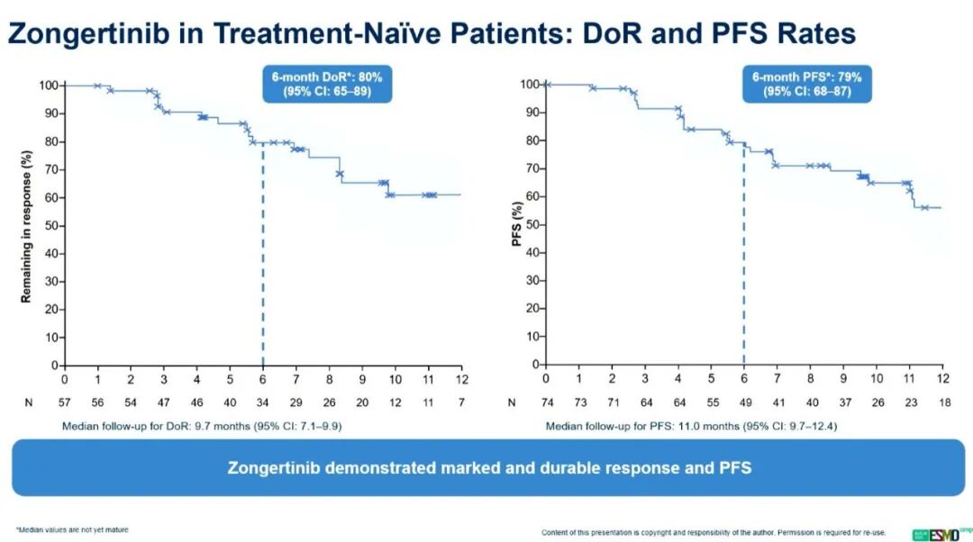 Beamion LUNG-1试验共有74名患者接受了120 mg的zongertinib治疗。值得注意的是,有2名患者曾接受过既往治疗。本次汇报重点关注的队列2纳入了初治且具有酪氨酸激酶结构域突变的患者。主要终点是通过盲态独立中心审查评估的ORR,次要终点包括通过BICR评估的疾病控制率、DOR和PFS。
