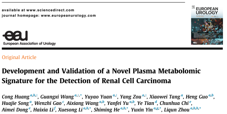 编者按:早期诊断对于提高肾细胞癌(RCC)的生存率至关重要;然而,有效的实验室检测方法仍然缺乏。近期,北京大学第一医院泌尿外科周利群/李学松/何世明教授团队与北京大学基础医学院尹玉新/王光熙团队合作,通过表征RCC中的代谢重编程,开发了一个人工智能(AI)联合代谢组学、多组学联合分析技术的血浆代谢模型,其能够有效检测发现肾癌;相关研究成果已经发表于国际泌尿外科顶级期刊European Urology(IF=25.2)。对于泌尿肿瘤科医生而言,该研究提供了一种有潜力的微创诊断工具,可以补充影像学检查,改善早期肾细胞癌的检测,并可能改进患者的治疗策略。