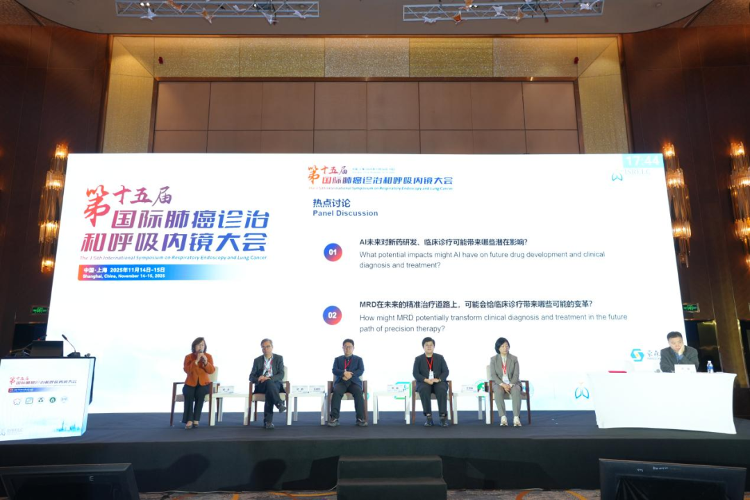 热点讨论环节,在四川大学华西医院卢铀教授主持下,复旦大学附属中山医院胡洁教授、湖南省肿瘤医院邬麟教授、郑州大学附属肿瘤医院王启鸣教授、中南大学湘雅医院李敏教授、河南省肿瘤医院王慧娟教授围绕“AI在新药研发与临床诊疗中的潜在影响”及“MRD(微小残留病灶)在精准治疗中的未来角色”两大热点议题展开讨论。胡洁教授指出,AI已深入肺癌早筛及老年患者全流程管理,未来将在新药研发与医患教育中发挥更大潜力;邬麟教授强调,MRD需前瞻研究验证其临床指导价值,目前尚不能作为治疗决策依据;王启鸣教授认为AI与MRD均是大数据时代产物,可互补传统诊疗手段;李敏教授提出AI助力共病管理与患者教育,而MRD目前主要提供预后信息;河南省肿瘤医院王慧娟教授强调MRD标准化是临床转化的关键。讨论中,专家们对临床推荐MRD检测持不同立场,反映出该技术从科研走向实践仍需共识。卢铀教授总结指出,AI正快速拓展应用场景,而MRD仍需在科学指引中稳步推进。