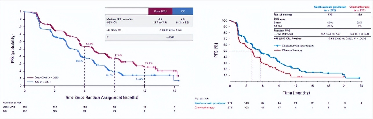 TROPION-Breast01研究(左)与TROPiCS-02研究(右)的PFS
