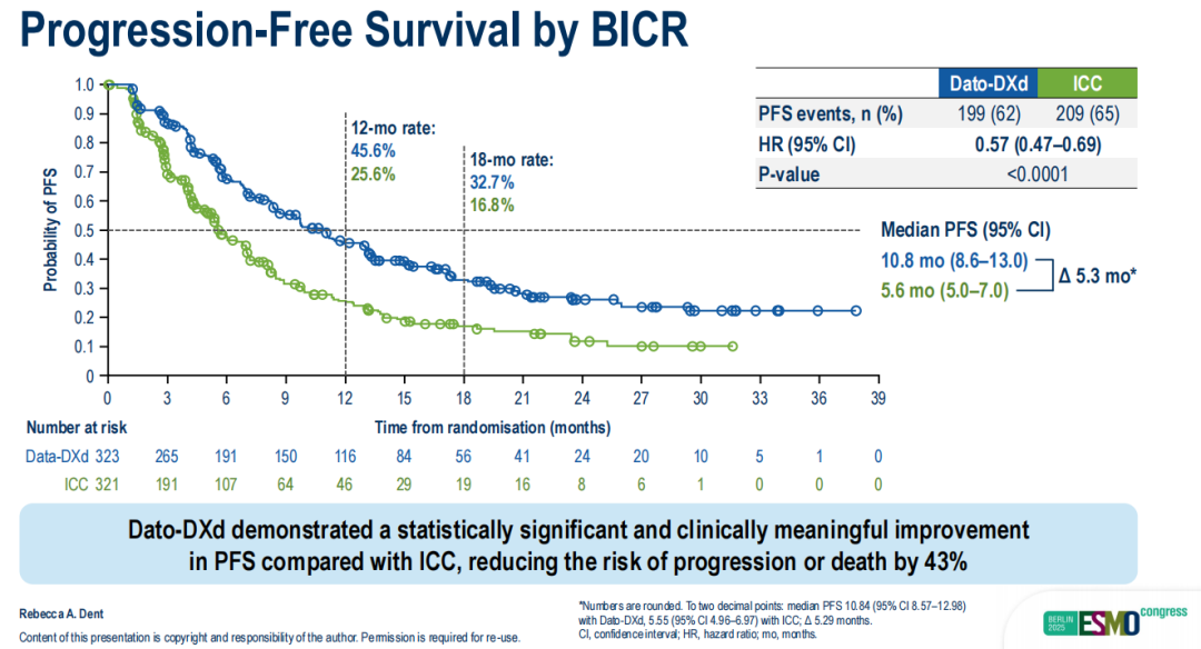 △TROPION-Breast02研究由BICR评估的PFS数据