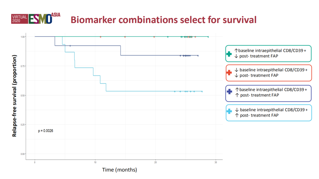 从最后一例患者接受RC手术算起,所有的患者至少随访了两年时间。结果显示,给药之后,pCR为31%(27/88),达到了主要疗效终点;而在PD-L1阳性的患者群体中,pCR为37%(13/35)。在随访期间,23%(20/88)的患者发生了疾病复发或者因肿瘤死亡;仅有一名pCR的患者出现了疾病复发。在所有接受RC的88名入组患者中,2年的无复发生存率(RFS)为77%(95%CI:67%~85%),2年的总生存率(OS)为82%(95%CI:72%~88%)。研究过程中并没有观察到新的药物安全问题或者显著的手术相关并发症。值得注意的是,ABACUS研究还发现肿瘤浸润CD8+T淋巴细胞的浸润丰度及其CD39表达水平,以及肿瘤成纤维细胞活化蛋白与Atezolizumab治疗效果以及患者预后相关。这为进一步提高新辅助免疫检查点抑制剂的疗效提供了新的思路和治疗靶点。