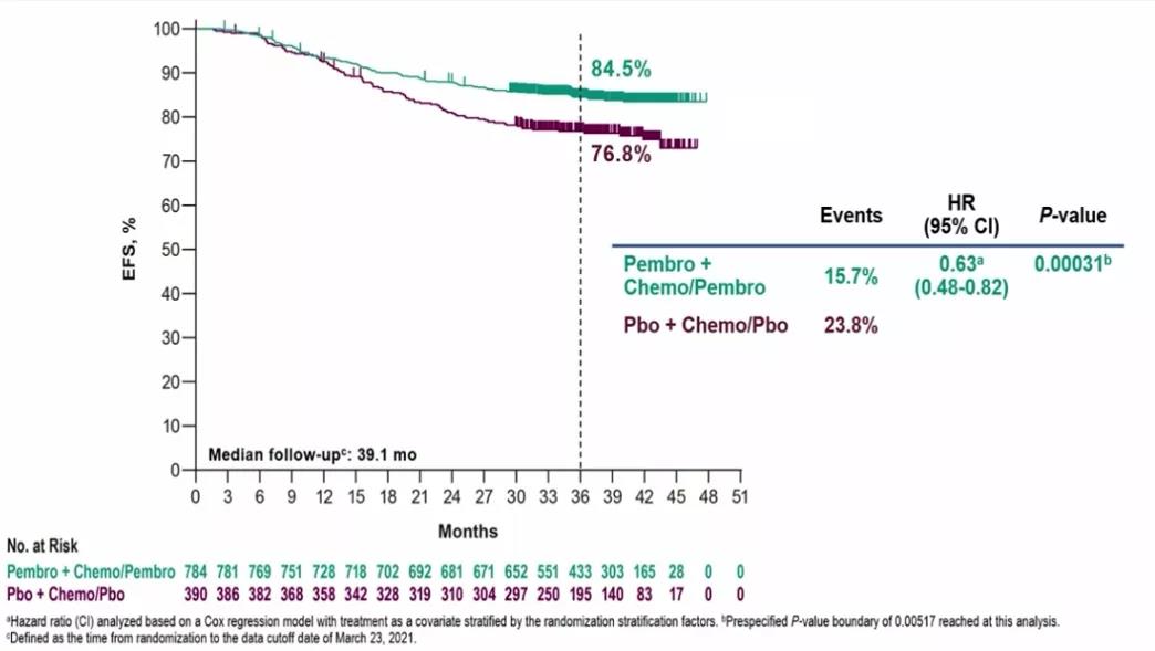 KEYNOTE-522研究三年的PFS率
