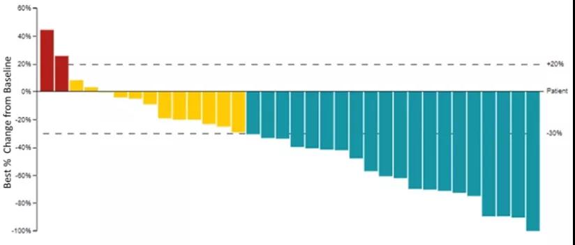 截至2021年7月,队列3入组HER2高表达(IHC2+/3+)患者30例,队列4入组HER2低表达(1+)患者4例。既往61.8%患者在晚期阶段接受过至少一线治疗,26.5%有肝转移。确定的扩展剂量为T-DXd 5.4mg/kg联合纳武利尤单抗360mg Q3w。队列3的ORR为36.7%(95%CI,19.9-56.1),疾病控制率为76.6%,其中CR者13.3%,中位DOR为13.1个月,中位PFS为6.9个月,中位OS为11.0个月。73.5%患者发生3级以上治疗相关不良反应,32.4%患者因不良反应停药,DS8201最受关注的不良反应为间质性肺炎,严重者可致死,本研究中报道的间质性肺炎发生率为23.5%,其中6例为1-2级,1例3级,1例5级(死亡)。此外,1例患者还发生了3级的心脏功能障碍。因此,该治疗组合在实际临床应用过程中需警惕严重不良反应的发生。