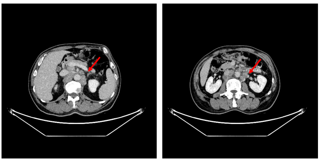 2022年6月2日全腹增强CT:胃癌并腹腔及腹膜后多发淋巴结转移;肝多发异常强化结节,考虑转移。